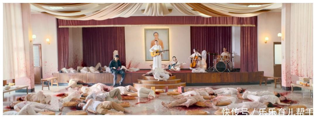 是以面临杀戮,他面无颜料。 在 灵修堂中,有好多个玄幻现实的镜头,张力感极佳。 信众在林禄和的大幅画像下拉着琴唱着歌,陈桂林却从容地装着弹夹,然后一个一个将他们行刑般杀死。 这种杀戮,连合陈桂林的颜料,完全像是正义的,凛然的,莫得任何说念德包袱的。