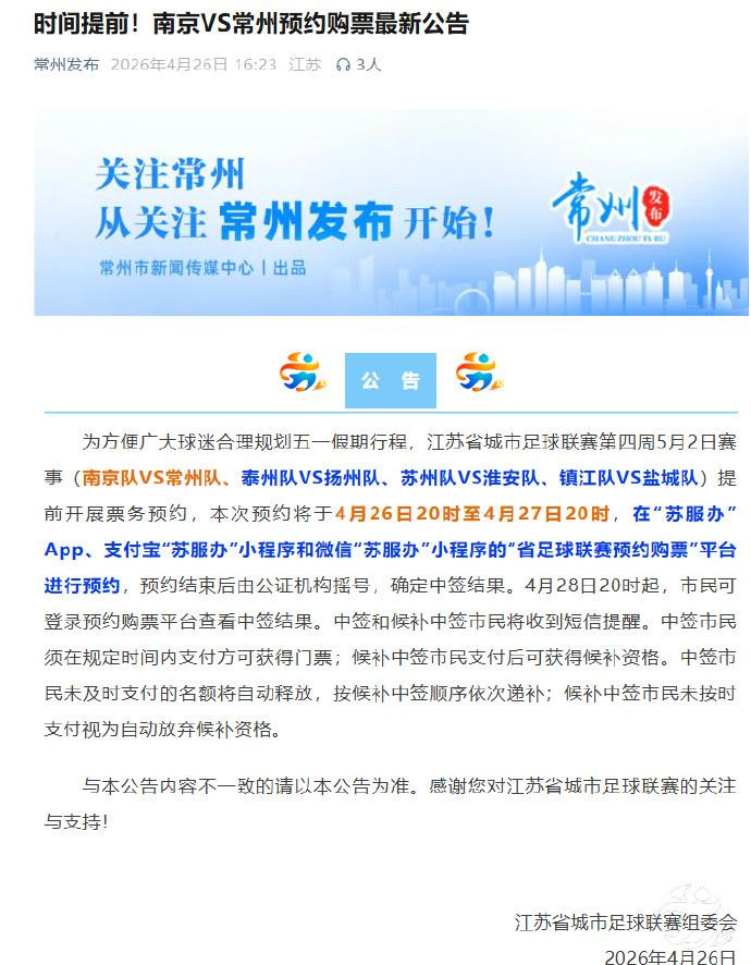 电子博彩游戏平台博彩公司控制比赛_官方: 为浅薄球迷假想五一, 5月2日苏超购票提前开启预约